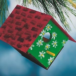 Product Description : Easy-to-construct birdhouse is an ideal project for all ages. Finish with stain, paint or a combination of both. All wood pieces are precut to size. 1" entrance hole. Includes precut luan and pine pieces, dowels, staples, sandpaper and instructions. Unassembled and unfinished. 5"W x 5"H x 6"D. Pack of 12.