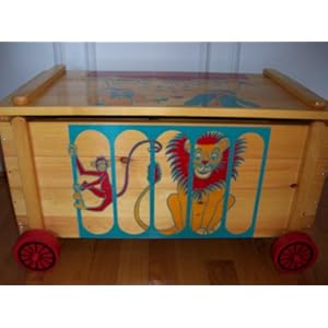 Product Description : NEW WOODEN CIRCUS WAGON TOY CHEST BLANKET BOX HOPE CHEST BEAUTIFUL THREE - COLOR AUTHENTIC CIRCUS DESIGN PROTECTED BY CLEAR VARNISH MADE OF 3/4 INCH THICK SOLID WOOD PRE-ASSEMBLED SECTIONS ASSEMBLY DIRECTIONS INCLUDED ROPE HANDLES FOR PULLING ON 4 DECORATED STURDY WOOD WHEELS SAFETY GAP WITH CONSTANT FRICTION SAFETY LID SUPPORT HINGE **WILL NOT CLOSE ON FINGERS!! WILL NOT SLAM!!** DIMENSIONS: 33 INCHES WIDE X 17 1/2 INCHES HEIGHT X 18 1/2 DIAMETER MADE IN U.S.A. NEW IN BOX!!! GREAT FOR TOYS-BLANKETS-MAGAZINES-NEWSPAPERS-FIRE LOGS AND MUCH MORE!!! RETAILS FOR $169.99 GREAT GIFT ITEM!!! EXCELLENT KEEPSAKE!!! GREAT ADDITION FOR ANY HOME!!!