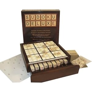 Product Description : From the ManufacturerSudoku board game. Multi-level highly addictive Puzzle on a board. Includes wooden sudoku board with recesses, 81 double-sided two color counters, 81 mini double-sided two color counters, 1 book with 100 puzzles, 4 self-adhesive board buffers, and 1 velvet counter bag No pencil or paper required. Can be used for any 9 x 9 sudoku. Solve it yourself or with others. Sudoku book with 100 puzzles. Removable grid. Product Description : Sudoku is the addictive logic game where players have to fill out a 9 x 9 grid so that each column and row has the numbers 1 through 9, without any duplicates. Now anyone can play the game with this handsome Wooden Sudoku game board. Simply place the two inch tiles along the board to form and complete each puzzle. When the game is done, a bottom drawer opens to reveal a neat way to store the sudoku tiles.